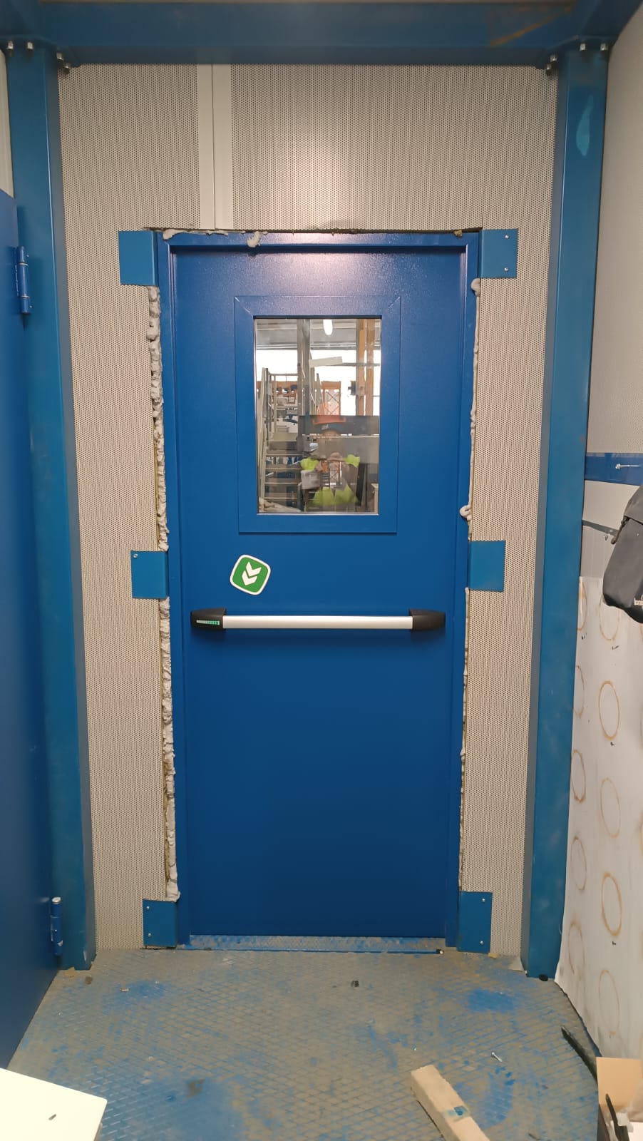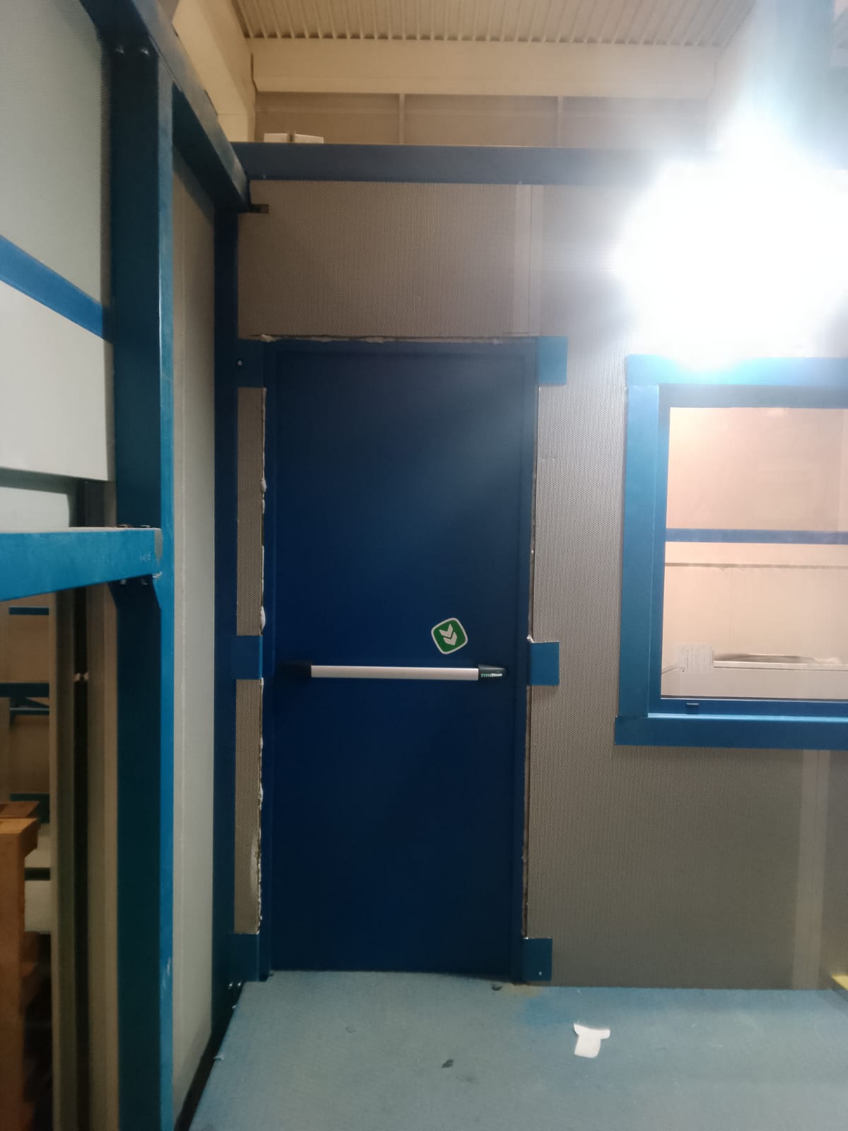 porte tagliafuoco ad anta singola, con maniglia e maniglione antipanico e oblò